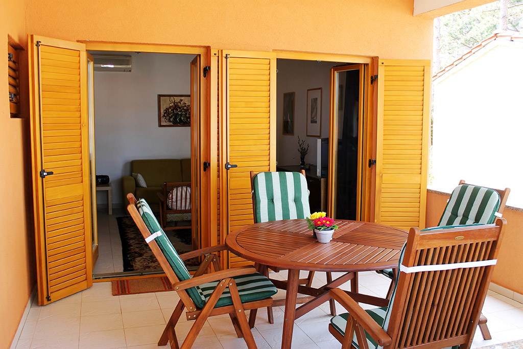 Svi apartmani imaju terasu s koje se pruža pogled na more koje je udaljeno 100m od kuće.